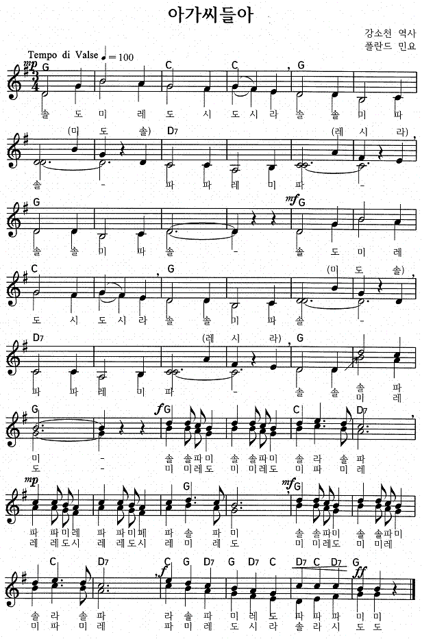 악보를 클릭하면 한 악절씩 따라 부를 수 있습니다.