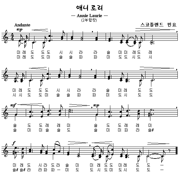 악보를 클릭하면 한 악절씩 따라 부를 수 있습니다.