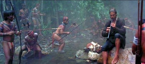 남미의 밀림 원주민에게 선교하러 들어간 가브리엘 신부가 원주민과의 처음 접촉을 시도한 방법이 바로 음악이다. 이과수 폭포 위에서 무장한 원주민들에게 완전히 포위 당한 상황에서 바위에