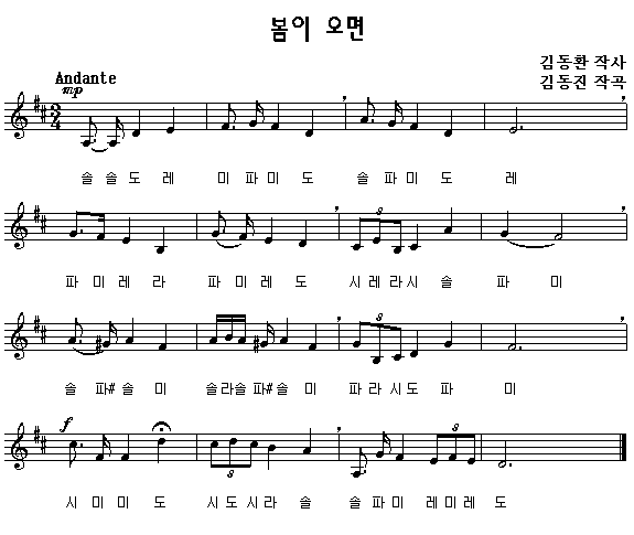 악보를 클릭하면 한 악절씩 따라 부를 수 있습니다.