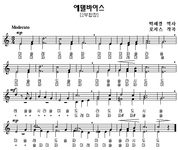 악보를 클릭하면 한 악절씩 따라 부를 수 있습니다.