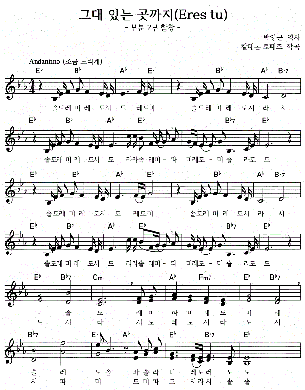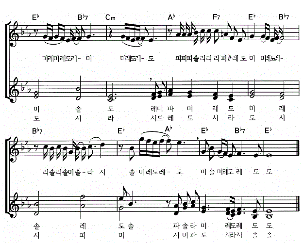 악보를 클릭하면 한 악절씩 따라 부를 수 있습니다.