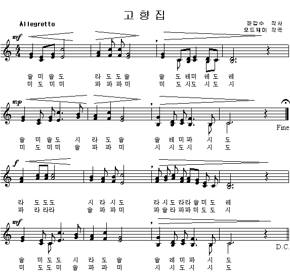 악보를 클릭하면 한 악절씩 따라 부를 수 있습니다.