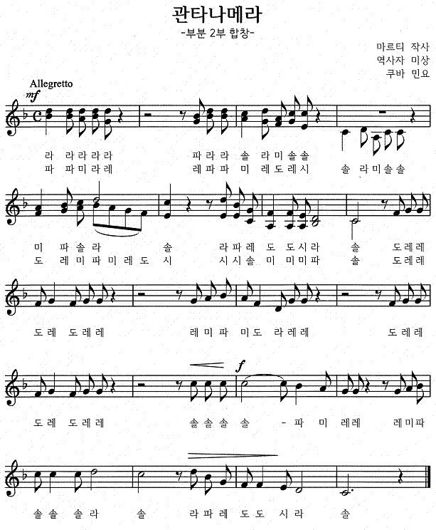 악보를 클릭하면 한 악절씩 따라 부를 수 있습니다.