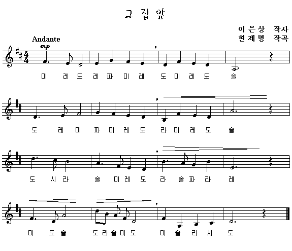 악보를 클릭하면 한 악절씩 따라 부를 수 있습니다.