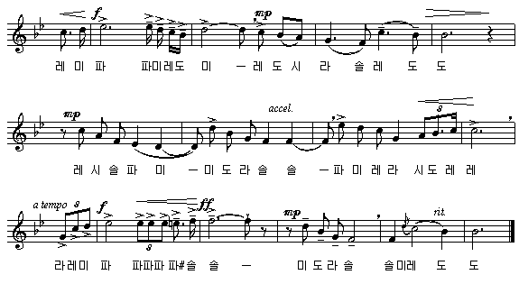 악보를 클릭하면 한 악절씩 따라 부를 수 있습니다.