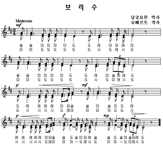 악보를 클릭하면 한 악절씩 따라 부를 수 있습니다.