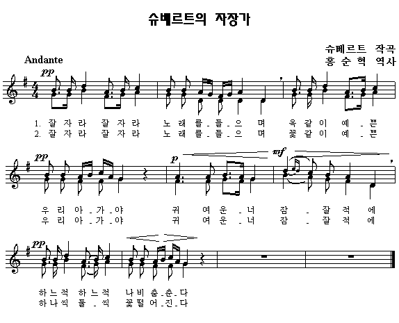 악보를 클릭하면 한 악절씩 따라 부를 수 있습니다.