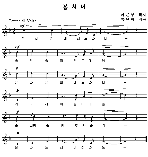 악보를 클릭하면 한 악절씩 따라 부를 수 있습니다.