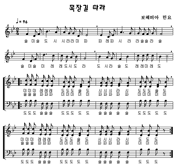 악보를 클릭하면 한 악절씩 따라 부를 수 있습니다.