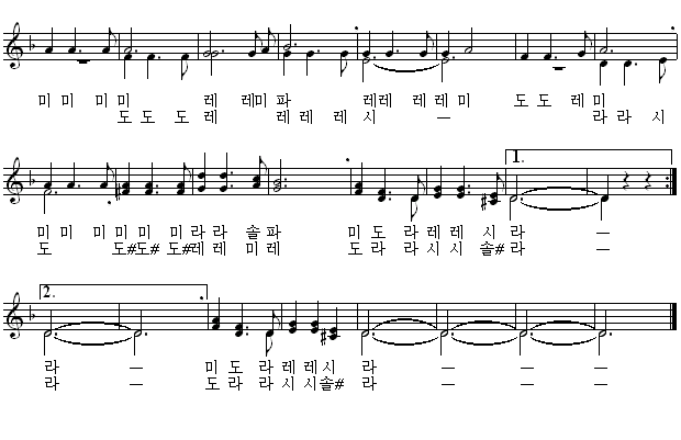 악보를 클릭하면 한 악절씩 따라 부를 수 있습니다.