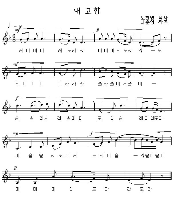 악보를 클릭하면 한 악절씩 따라 부를 수 있습니다.