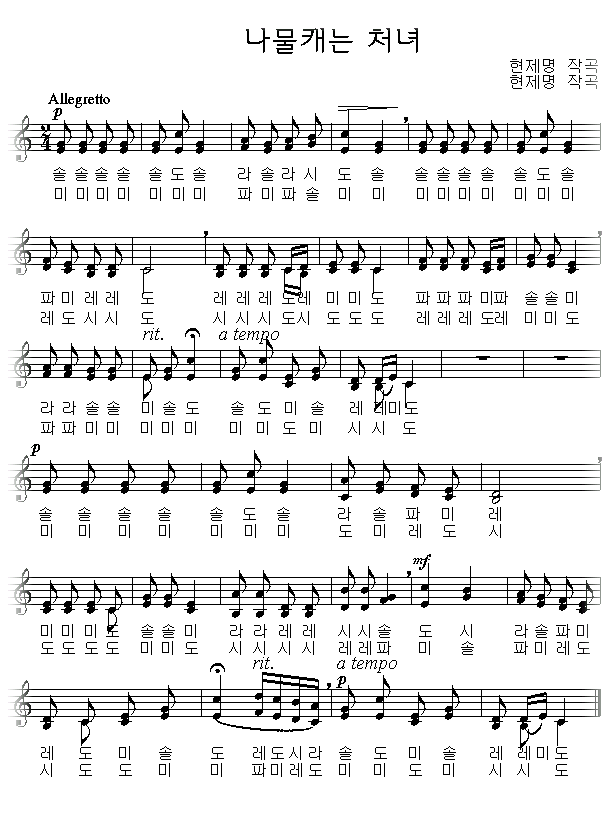 악보를 클릭하면 한 악절씩 따라 부를 수 있습니다.