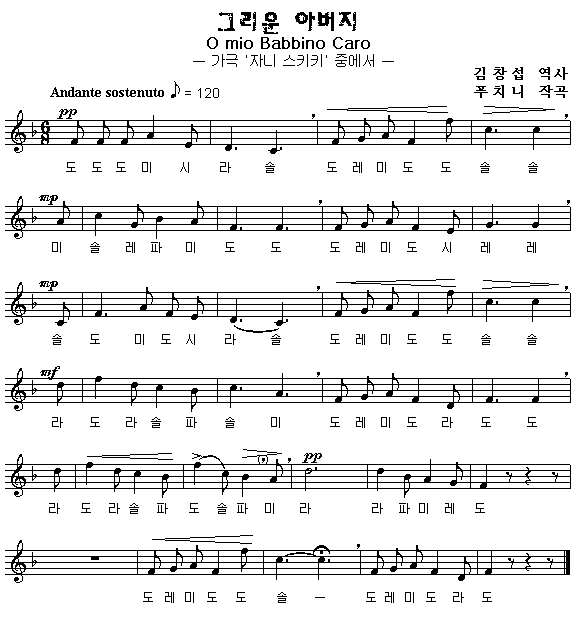 악보를 클릭하면 한 악절씩 따라 부를 수 있습니다.
