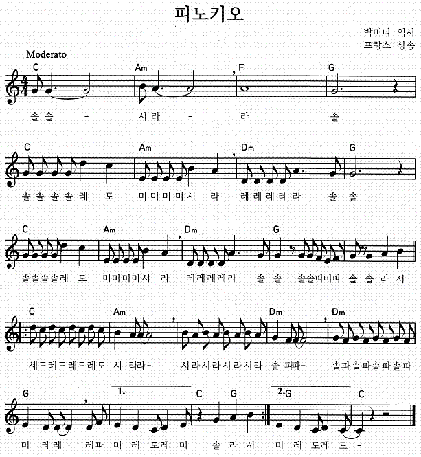 악보를 클릭하면 한 악절씩 따라 부를 수 있습니다.