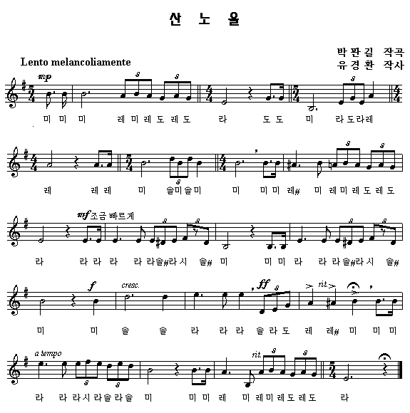 악보를 클릭하면 한 악절씩 따라 부를 수 있습니다.