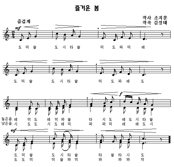 악보를 클릭하면 한 악절씩 따라 부를 수 있습니다.