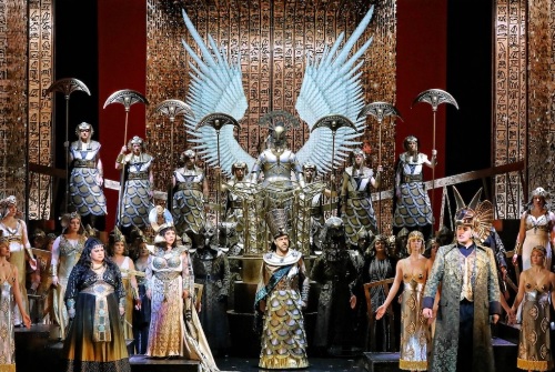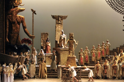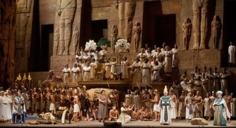 페라가 가장 유명하지만, 피라미드 발치에서 상연되는 이집트의 공연은 실감을 더해줄 게 분명하다. 그 후 베르디 자신이 총감독을 맡은 1872년 2월 8일 밀라노의 스칼라좌에서의 공연은 압도적인 성공을 하였다. 그보다 5년 후엔 파리에서 베르디 자신의 지휘로 공연을 가지게 되었다.