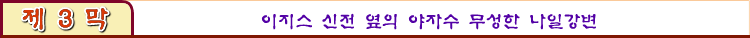 속에서 제사장들과 무녀들의 기도소리가 들려 온다. 이때 작은 배 한