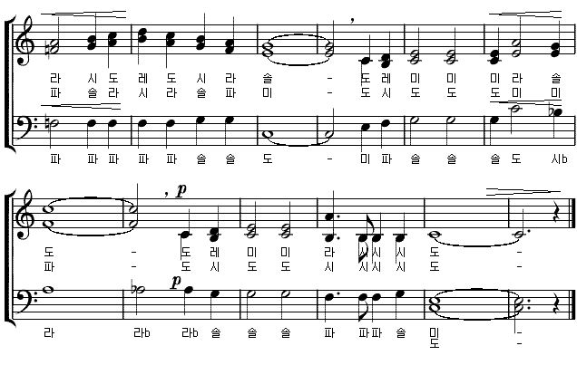 악보를 클릭하면 한 악절씩 따라 부를 수 있습니다.
