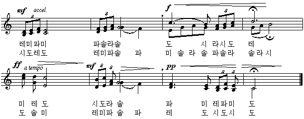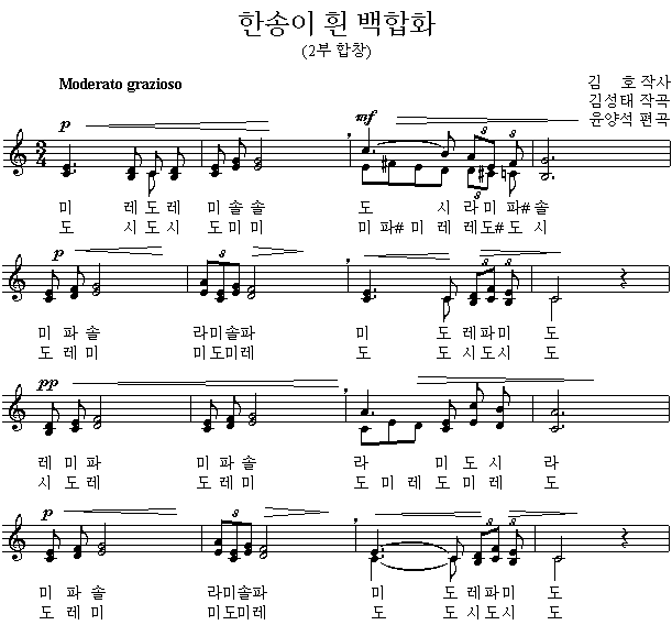 악보를 클릭하면 한 악절씩 따라 부를 수 있습니다.